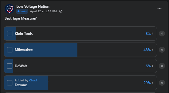 We ran a poll in the Low Voltage Nation Facebook Group for "Best Tape Measure".