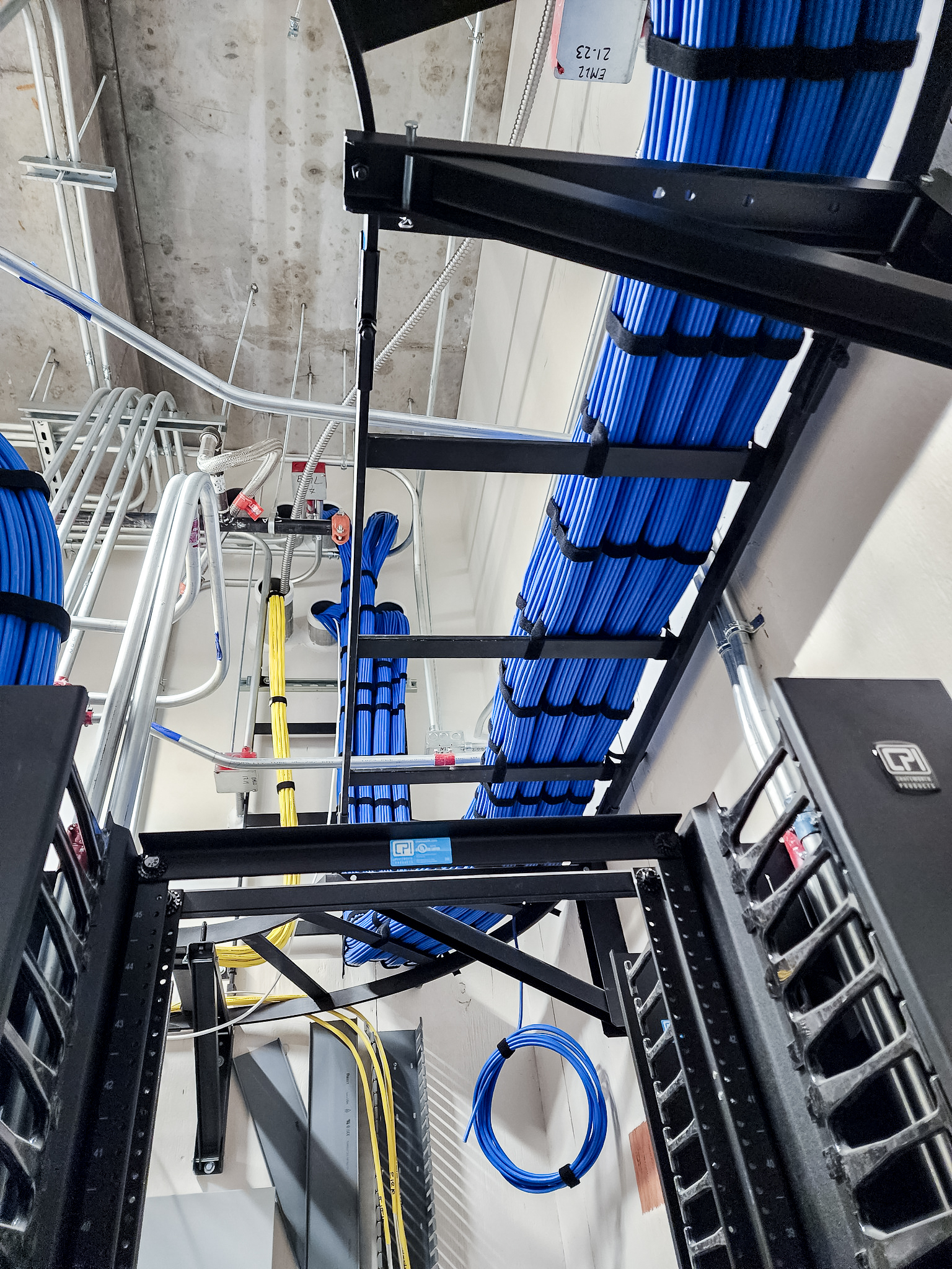 It was about 225 Cat6a cables. I'm torn on these angled panels, but he made them look great.